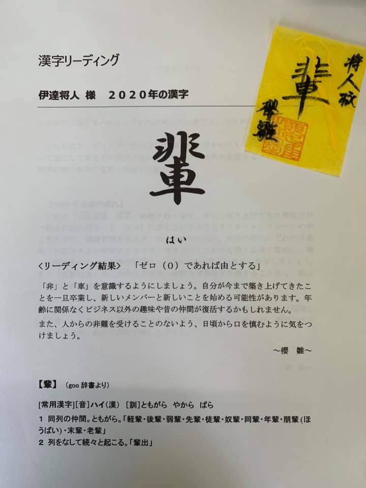 【今年の一字は… 輩❗️】